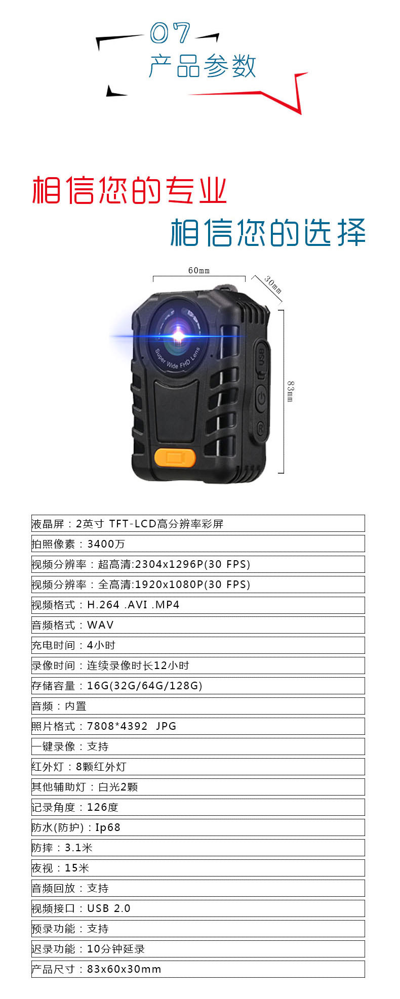視頻分辨率 超高清:2304x1296P(30 FPS)